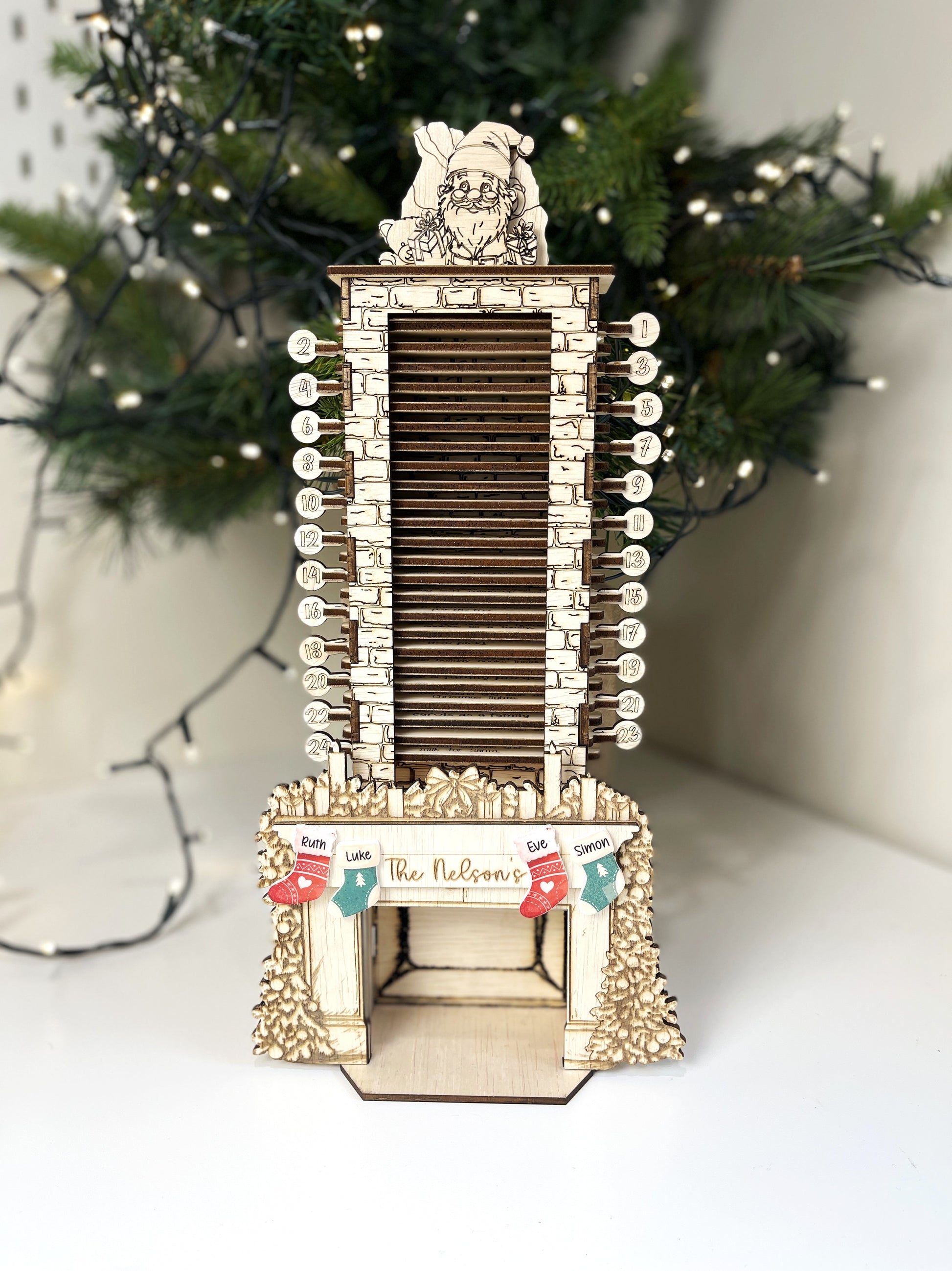 Our handcrafted Heirloom Family Advent Calendar features a 3D wooden chimney with Santa climbing down as you count the days to Christmas. Personalised with your family name and individual stockings, it’s a timeless piece made to be displayed year after year.